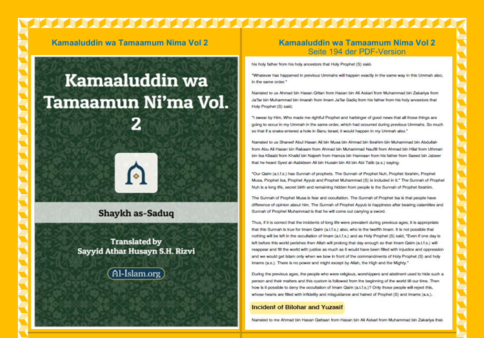 (Ruh-ul-Hayat, in Urdu Übersetzung Ain-ul-Hayat, von Allama Muhammad Baqir Majlisi)