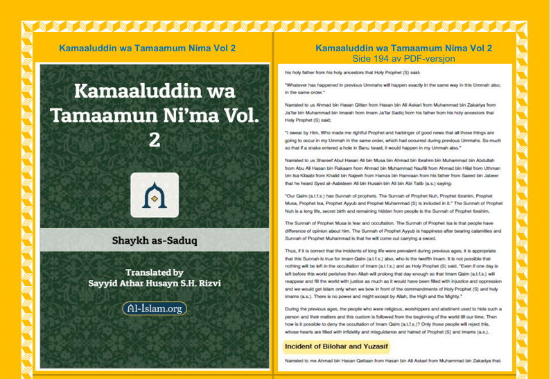 (Ruh-ul-Hayat, på urdu oversettelse Ain-ul-Hayat, av Allama Muhammad Baqir Majlisi)